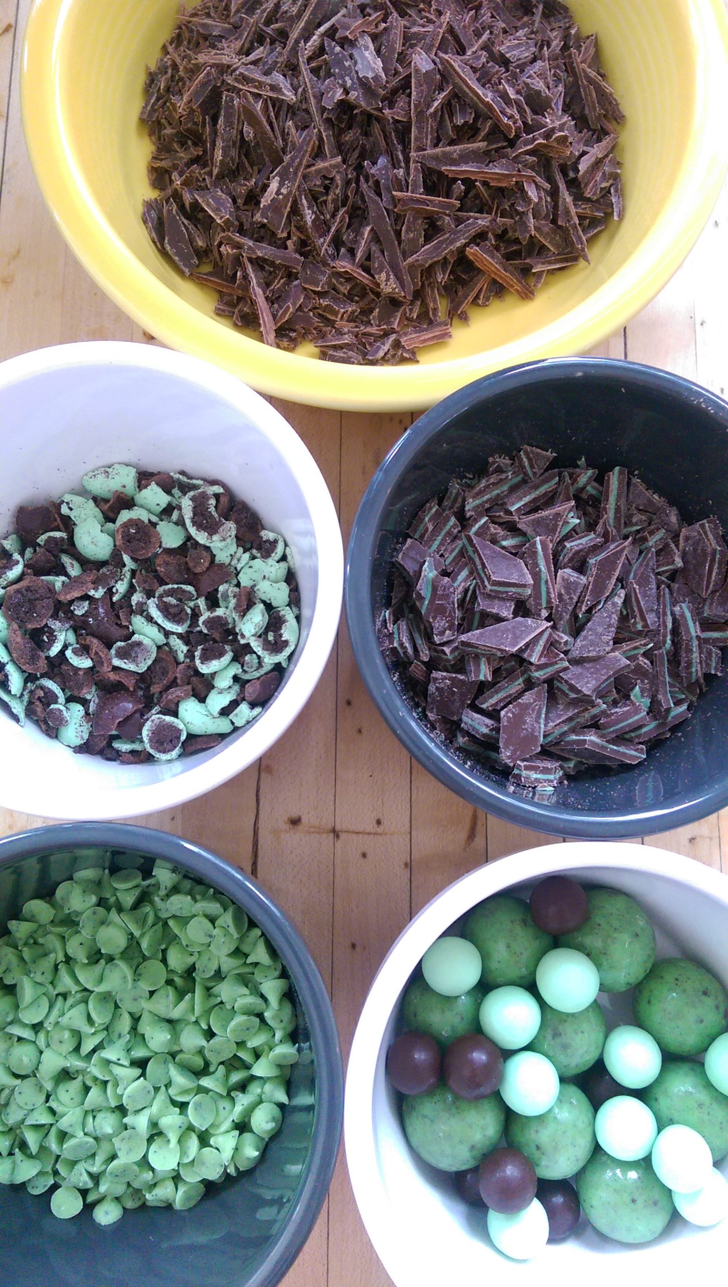 In my Pinterest travels I found a blog which I immediately fell in love with. A chocolate cake with mocha buttercream was what pulled me in. Liv for Cake is where I found this recipe though I did change things up just a bit. My sister’s favorite flavor is mint. (We are very much alike.) So I had a chocolate mint cake in my head. Easy enough to change the Swiss Meringue Buttercream flavor. And I happened to have recently purchased a small arsenal of chocolate-mint flavored candies from Nuts.com to adorn my cake appropriately. I had chocolate-mint malt balls, chocolate-mint cookie bites, chocolate mint squares (similiar to Andes mints) and mini mint chocolate chips. The mini chips were my absolute favorite of this purchase. They are sooo adorable!